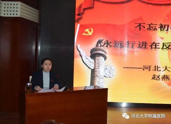 赵燕玲首先针对党的十八大以来,我党在党风廉政建设和反腐败工作中的显著成效,回顾了五年来党中央波澜壮阔的“打虎”历程,并结合医院实际情况,针对今年发生在身边的典型案例进行了深刻剖析,再一次为广大党员干部职工敲响警钟,警示大家要深刻理解新时期新形势下筑牢拒腐防变思想防线的重要意义。继而围绕十九大大会主题、十九大精神要点以及如何落实十九大精神等方面进行了深入阐述。报告对全院中层干部提出了新的工作要求,要把深入学习宣传贯彻十八届中央纪委工作报告作为重大政治责任,更要把深入学习宣传贯彻十九大精神作为首要政治任务。